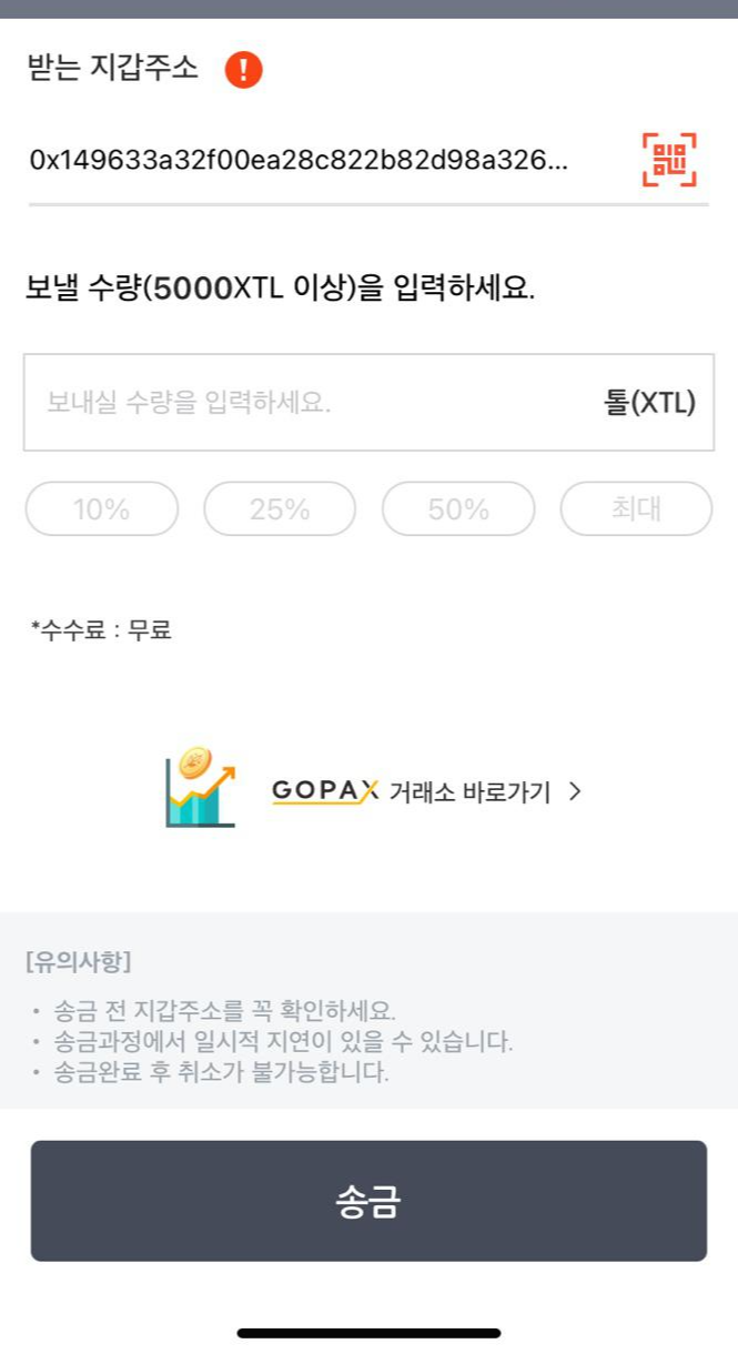 현재 좁쌀 코인은 5000톨 이상이여야 거래소 송금이 가능한데