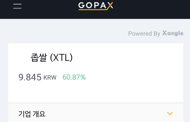 현재 좁쌀이 거래되고 있는 거래소는 "고팍스" 라는 거래소다.