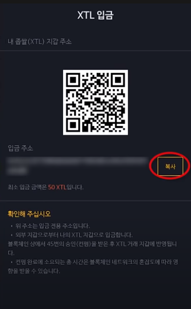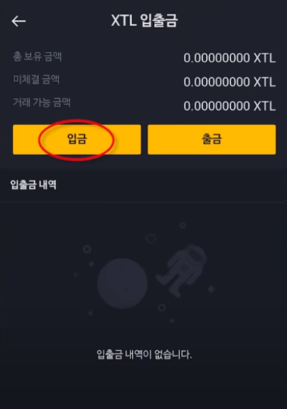 좁쌀코인을 선택하고 입금 버튼을 누르면