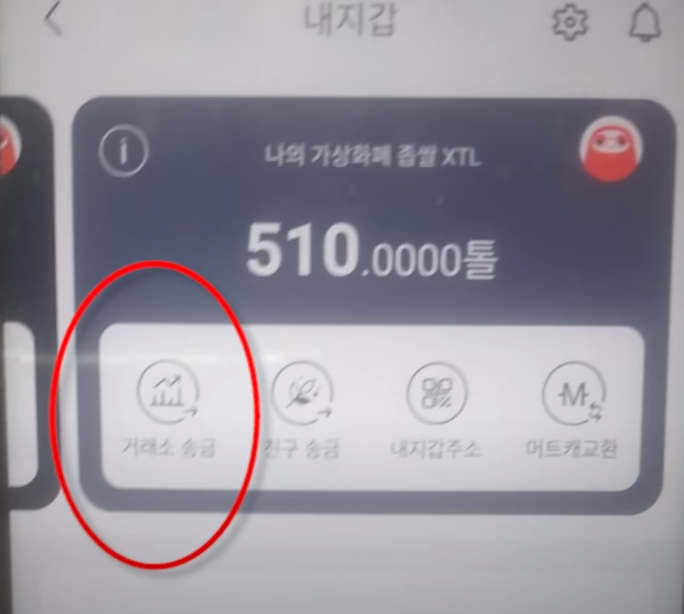 내 지갑에 있는 좁쌀 거래소 송금을 눌러준다.