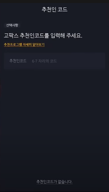 추천인 코드를 입력해야 5000원을 공짜로 얻을 수 있다.